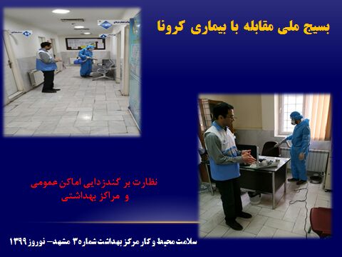 با شروع بسیج ملی مبارزه با کرونا واحد بهداشت محیط و سلامت کار مرکز بهداشت شماره سه ضمن تشدید نظارت ها ، آموزش نکات بهداشتی و نحوه ضدعفونی ،اطلاع رسانی گسترده و نصب پوستر در مراکز تهیه و توزیع مواد غذایی و نانوایی ها ، آرامستان ها ،مراکزخدمات سلامت تحت پوشش..جهت پیشگیری از کرونا در حال اقدام می باشد.