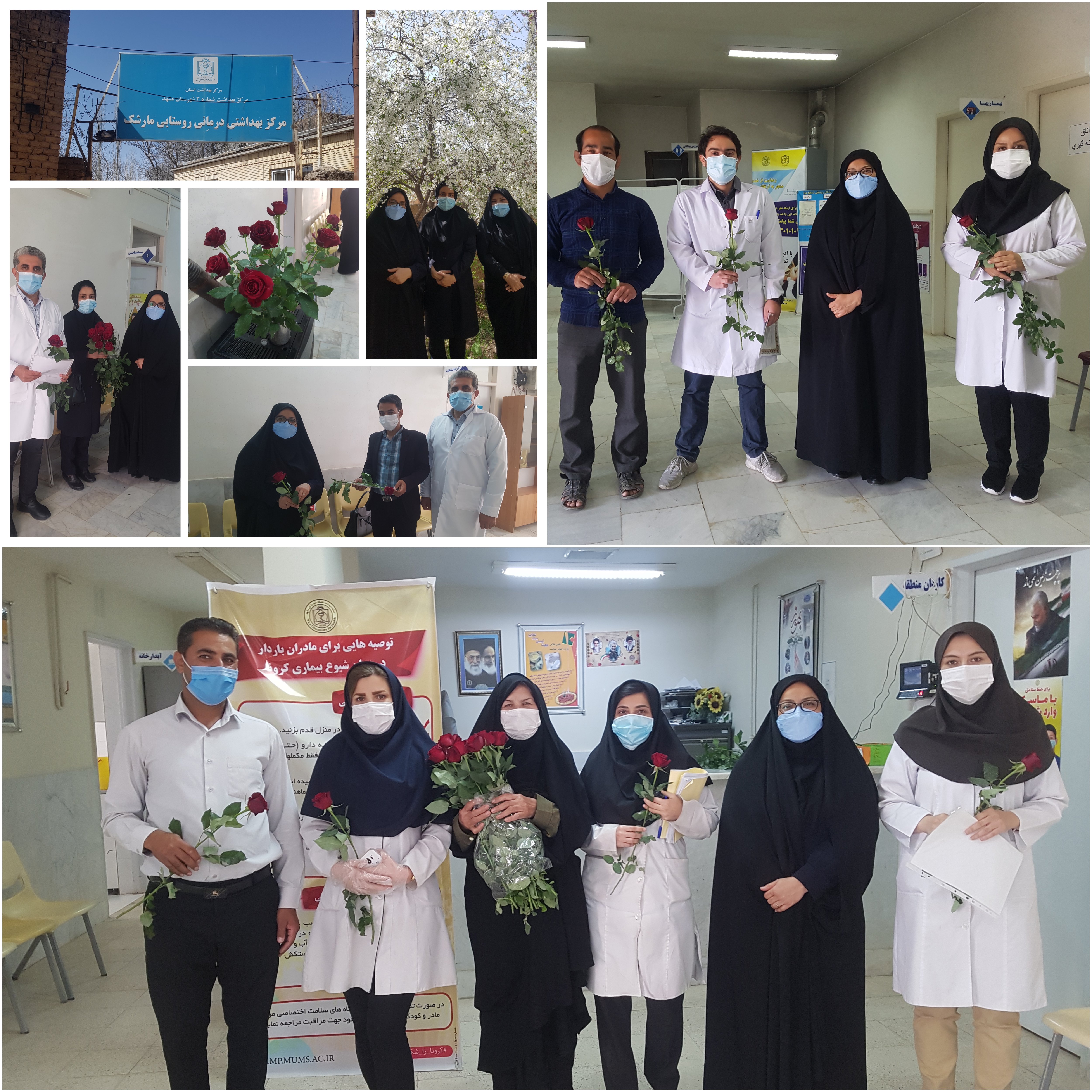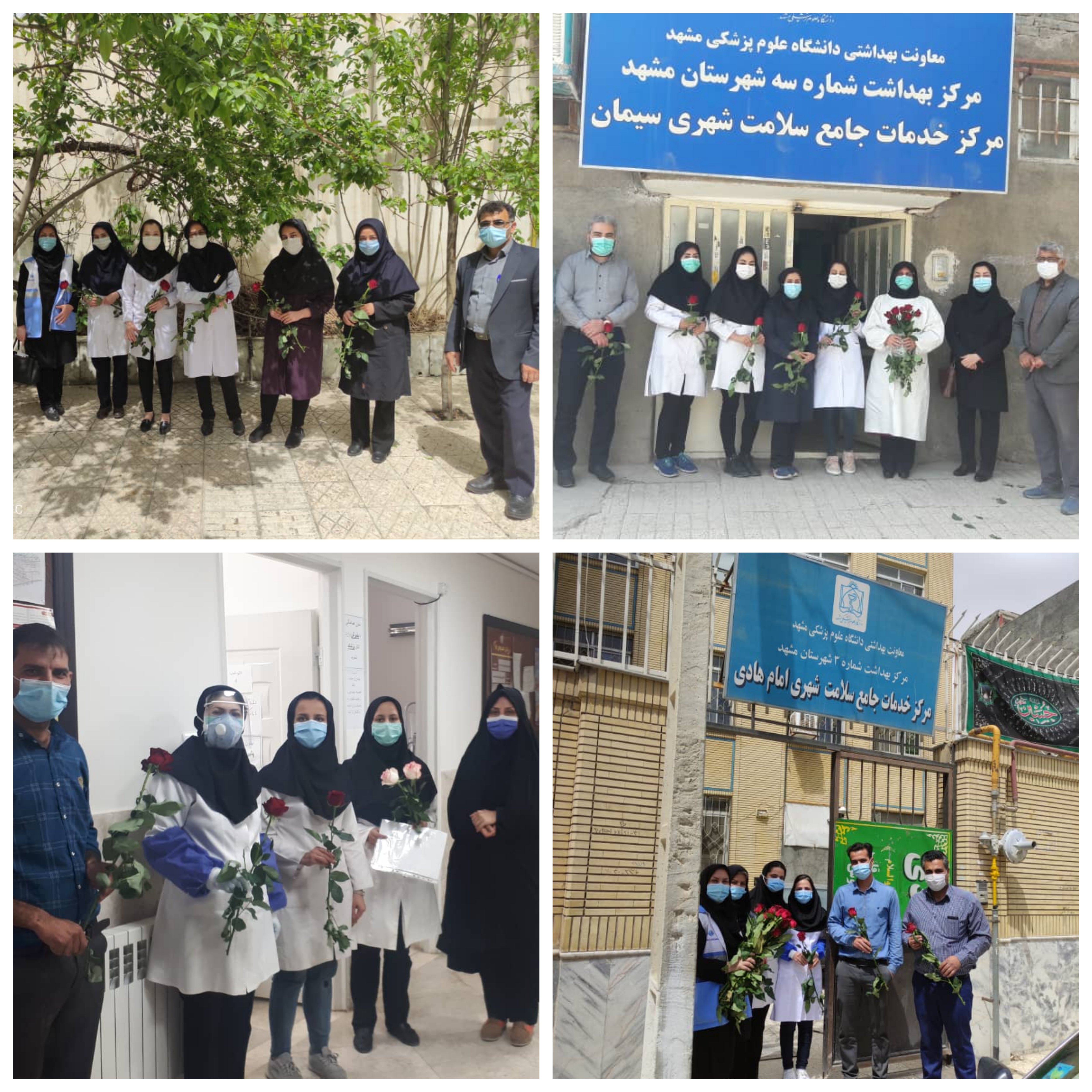 18 فروردین به مناسبت روز جهانی بهداشت و همچنین سال جهانی مدافعان سلامت مراسم قدردانی از سربازان خط مقدم جبهه مبارزه با کرونا در تمامی مراکز تحت پوشش مرکز بهداشت شماره سه با اهدای گل و لوح قدردانی با حضور معاون فنی و مسئولان واحدهای ستادی صورت گرفت.